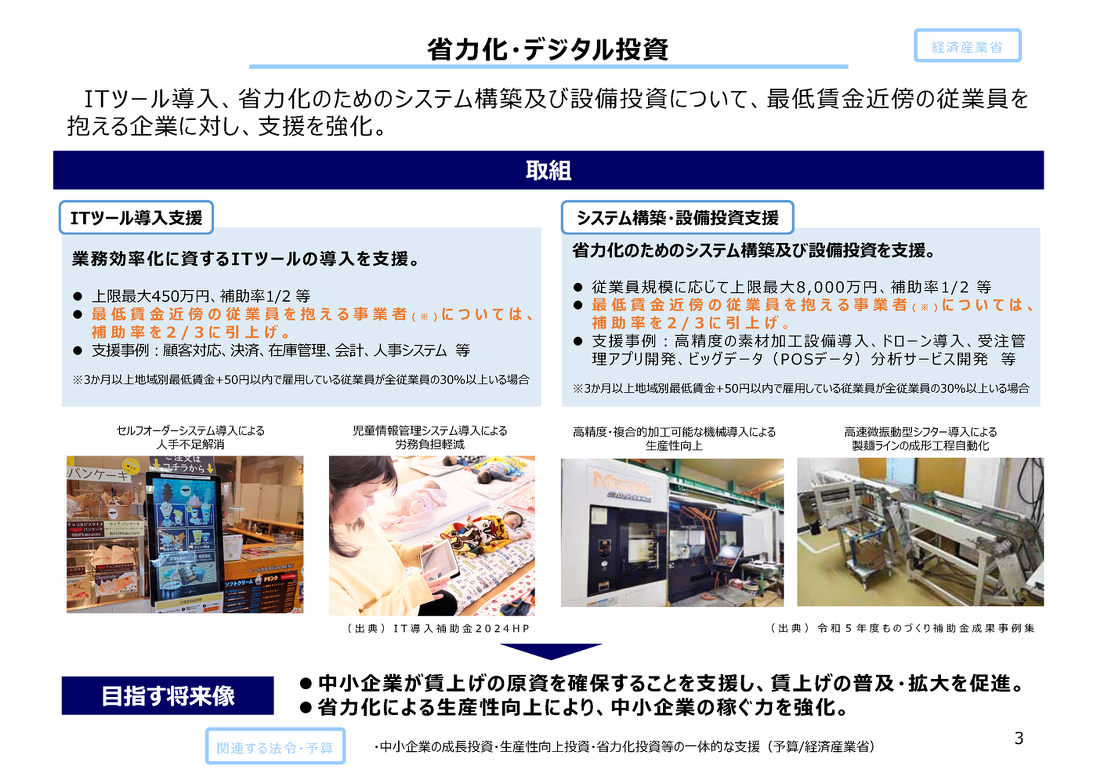 内容: 最低賃金引き上げ対応のための設備投資を支援。