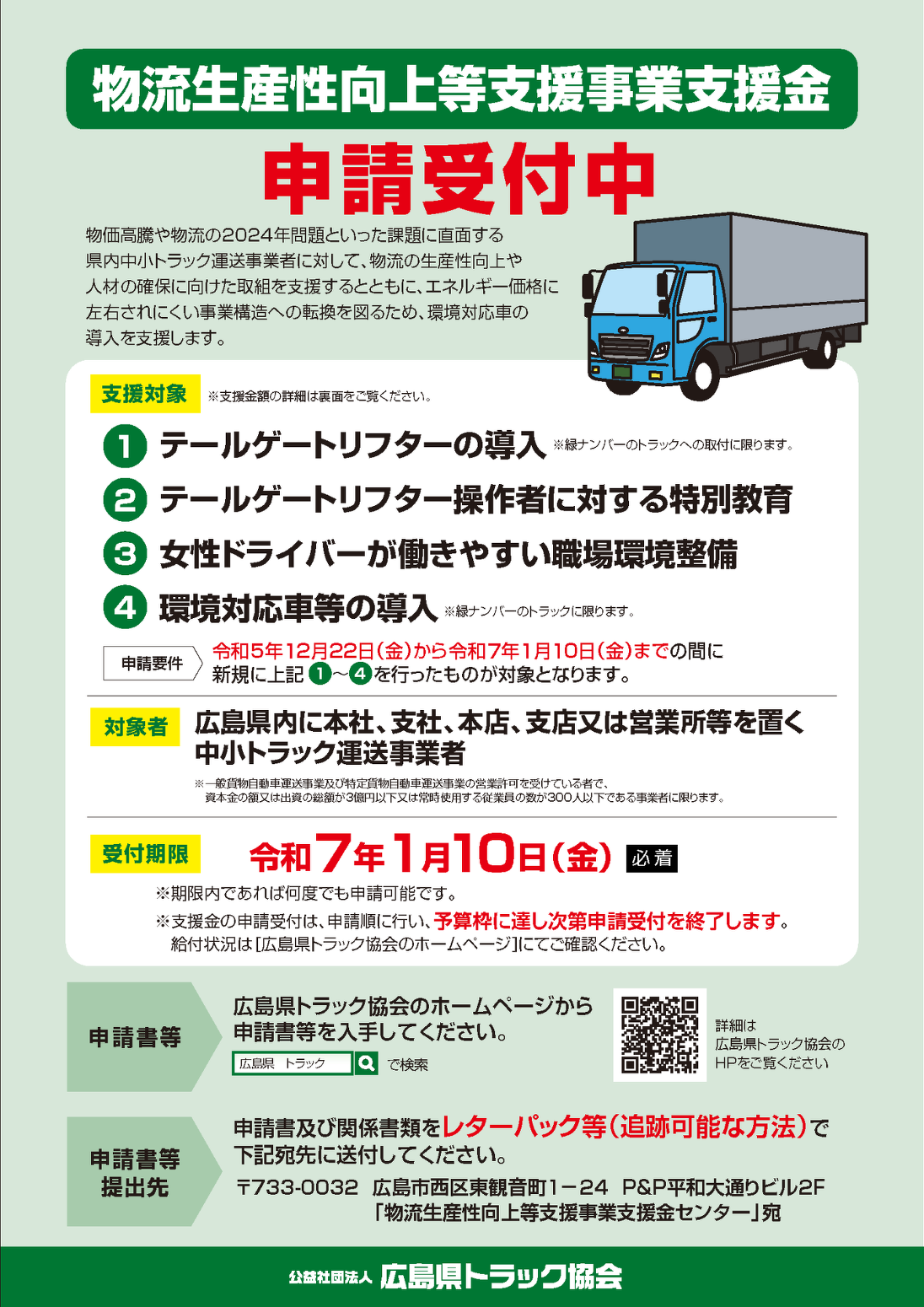 広島県が中小トラック運送事業者を支援!「物流生産性向上等支援事業」